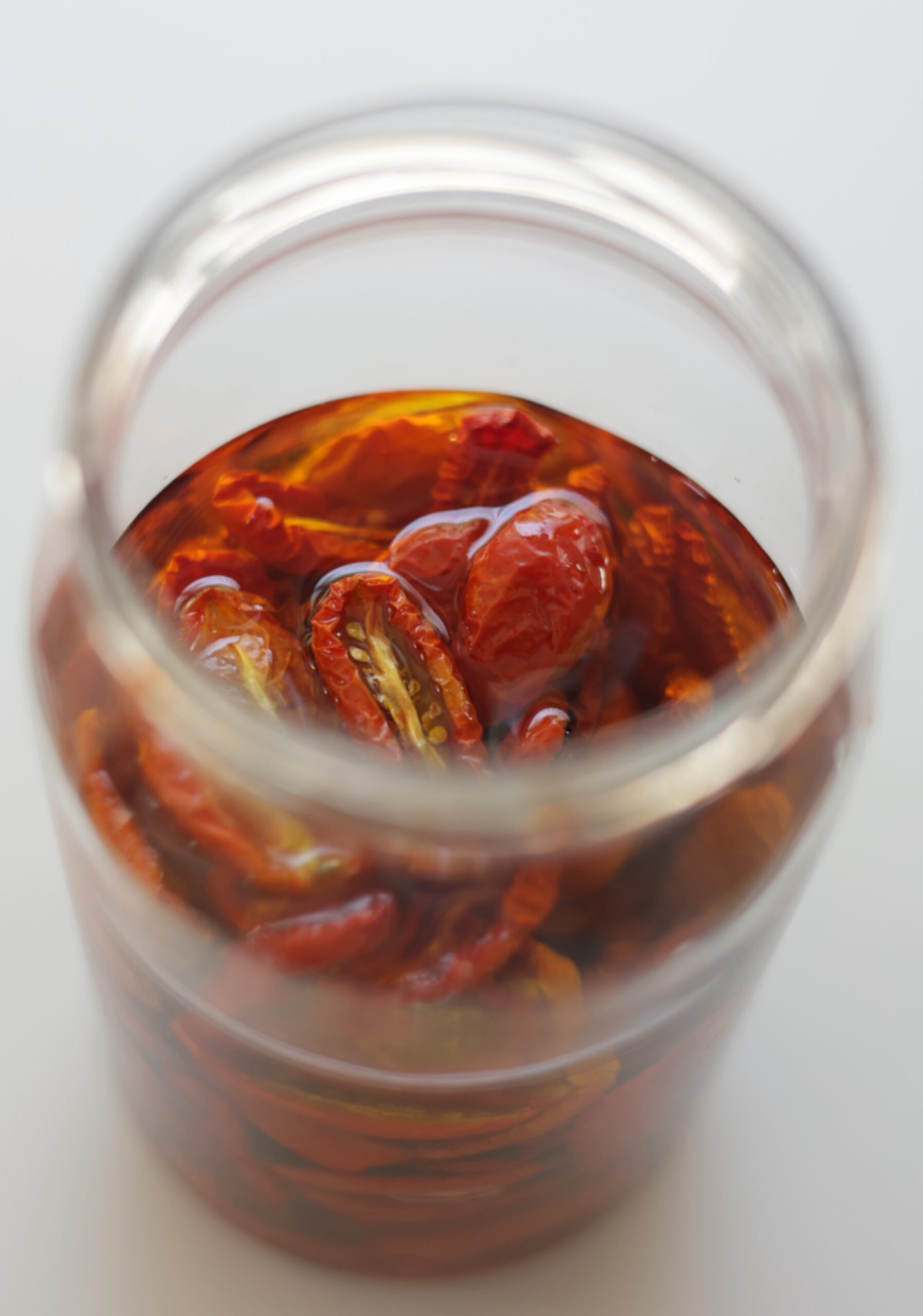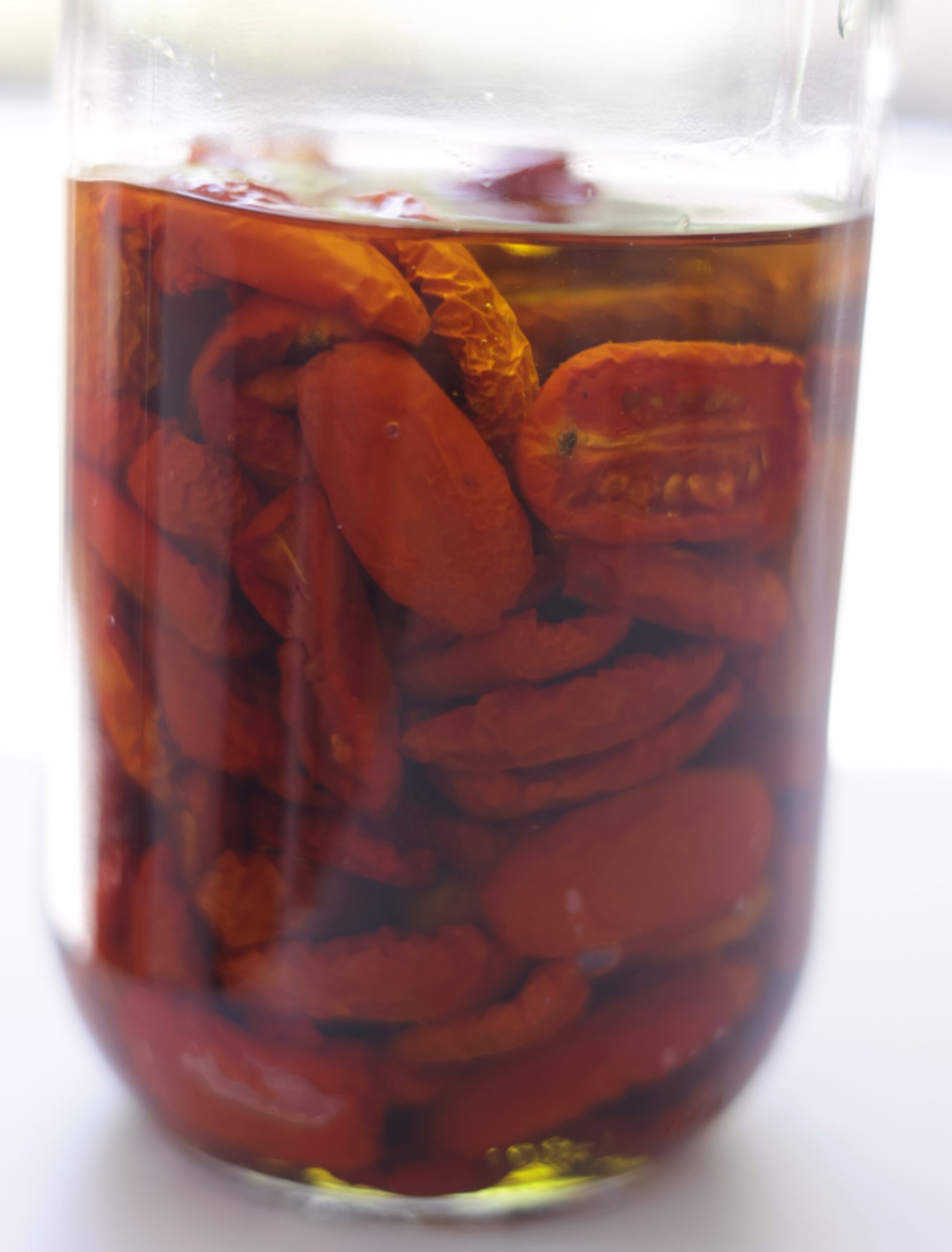 - שמן זית למילוי הצנצנת אחרי ייבוש העגבניות