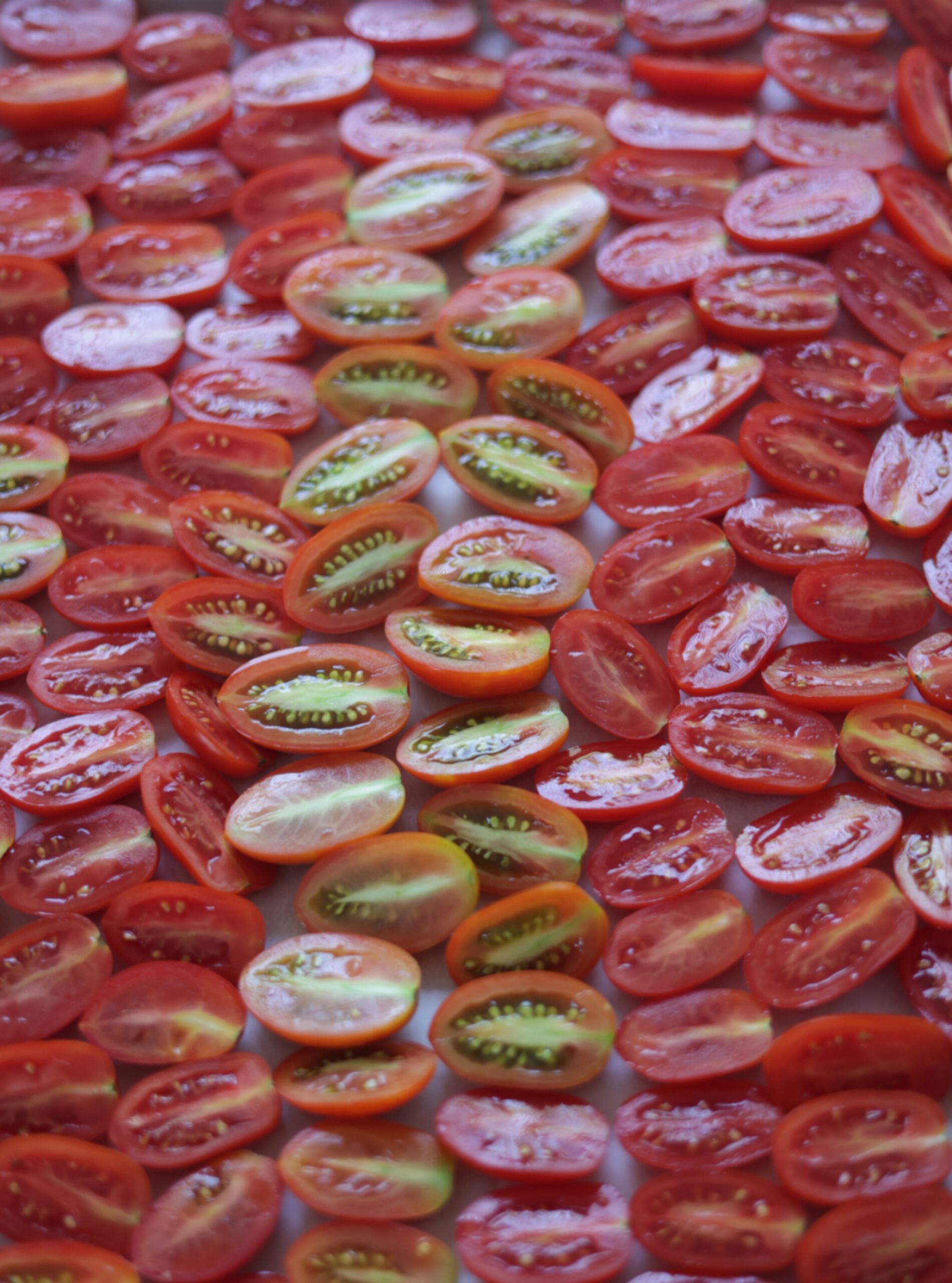 - 1 קילו עגבניות שרי תמר, חצויות לאורכן